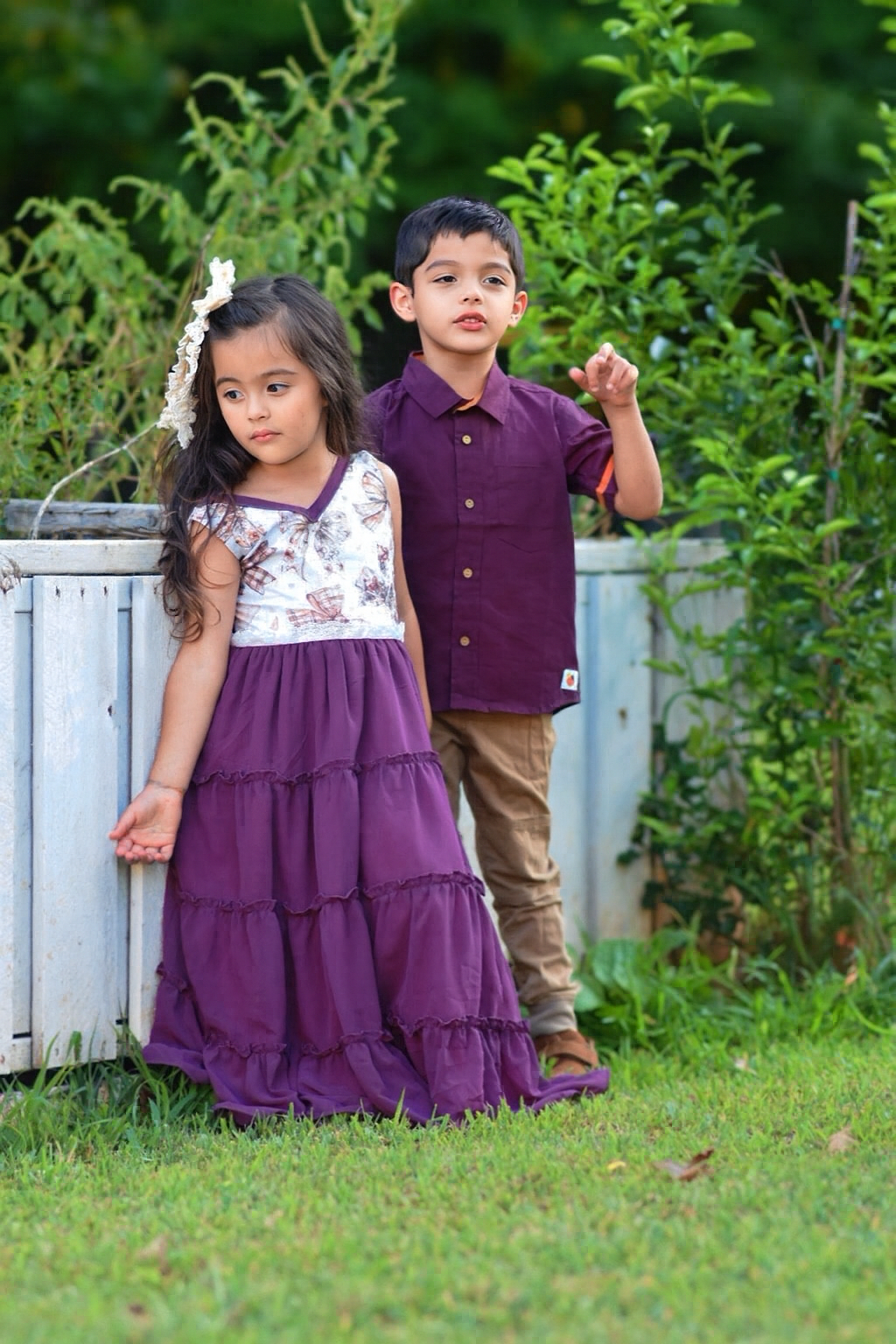 This classic collared maroon button-up shirt pairs perfectly with our Autumn Ember maxi dresses and is sure to make your little gentleman stand out!