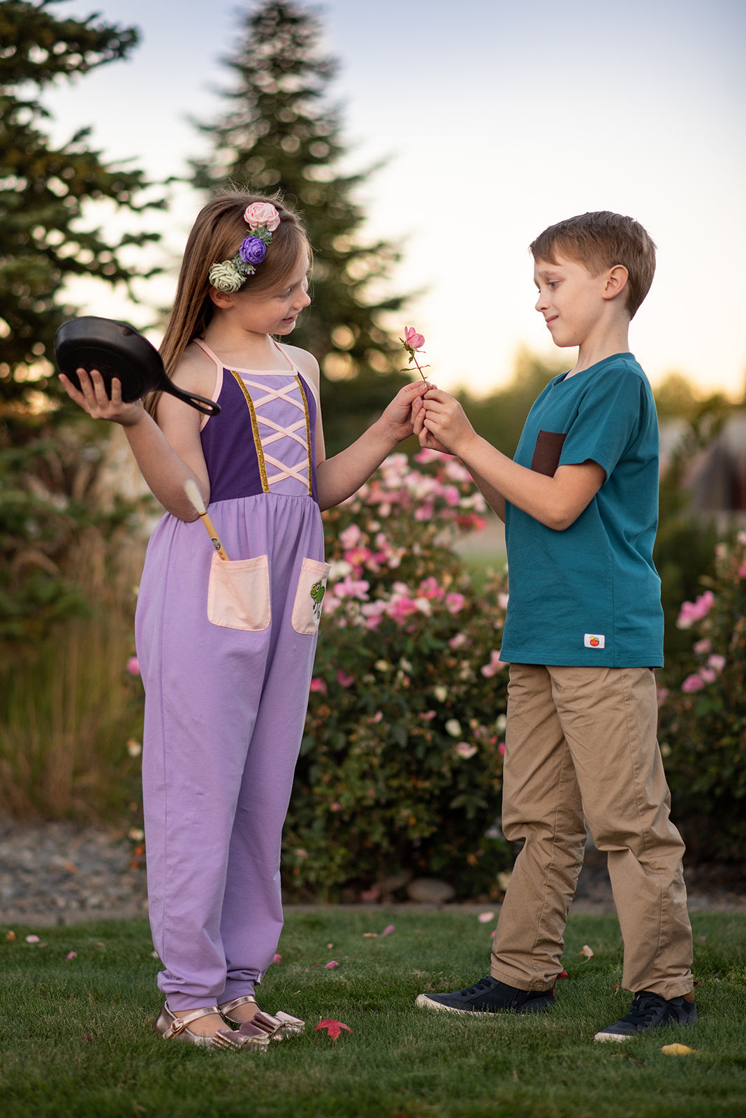 Featuring a chestnut brown pocket (perfect for storing tiny treasures or imaginary maps. Or rocks. Let’s face it, we know it will be rocks!), this soft cotton tee pairs effortlessly with everything from playground jeans to royal quests. Made for long, adventure-packed days, it’s durable, easy to wear, and endlessly cool — the perfect counterpart to our Tangled Dreams Romper for sibling styles that tell the whole story.