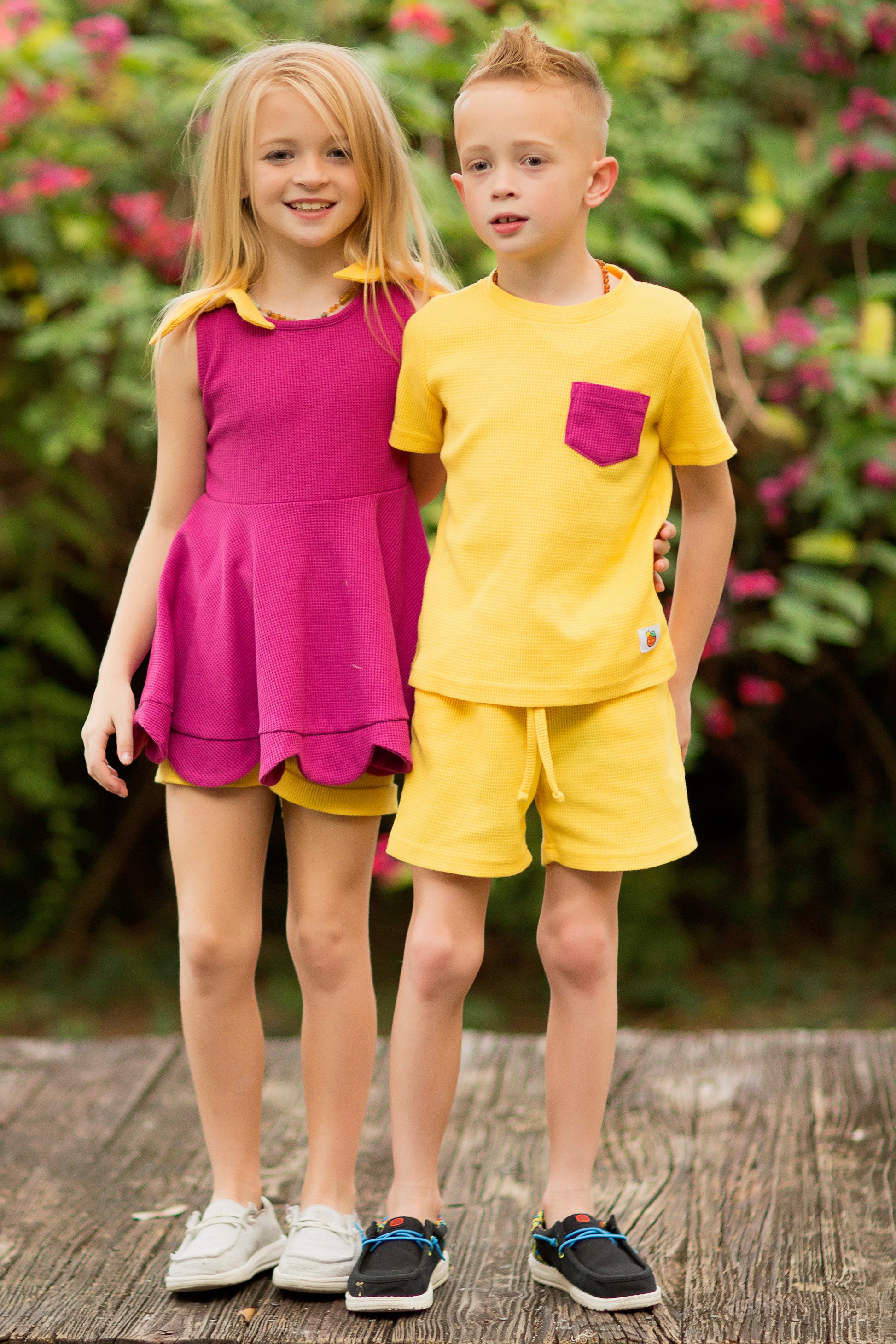 Made from our soft, breathable waffle fabric, these styles feature a lightweight textured knit that keeps kids comfortable through every adventure, from playground afternoons to family outings.