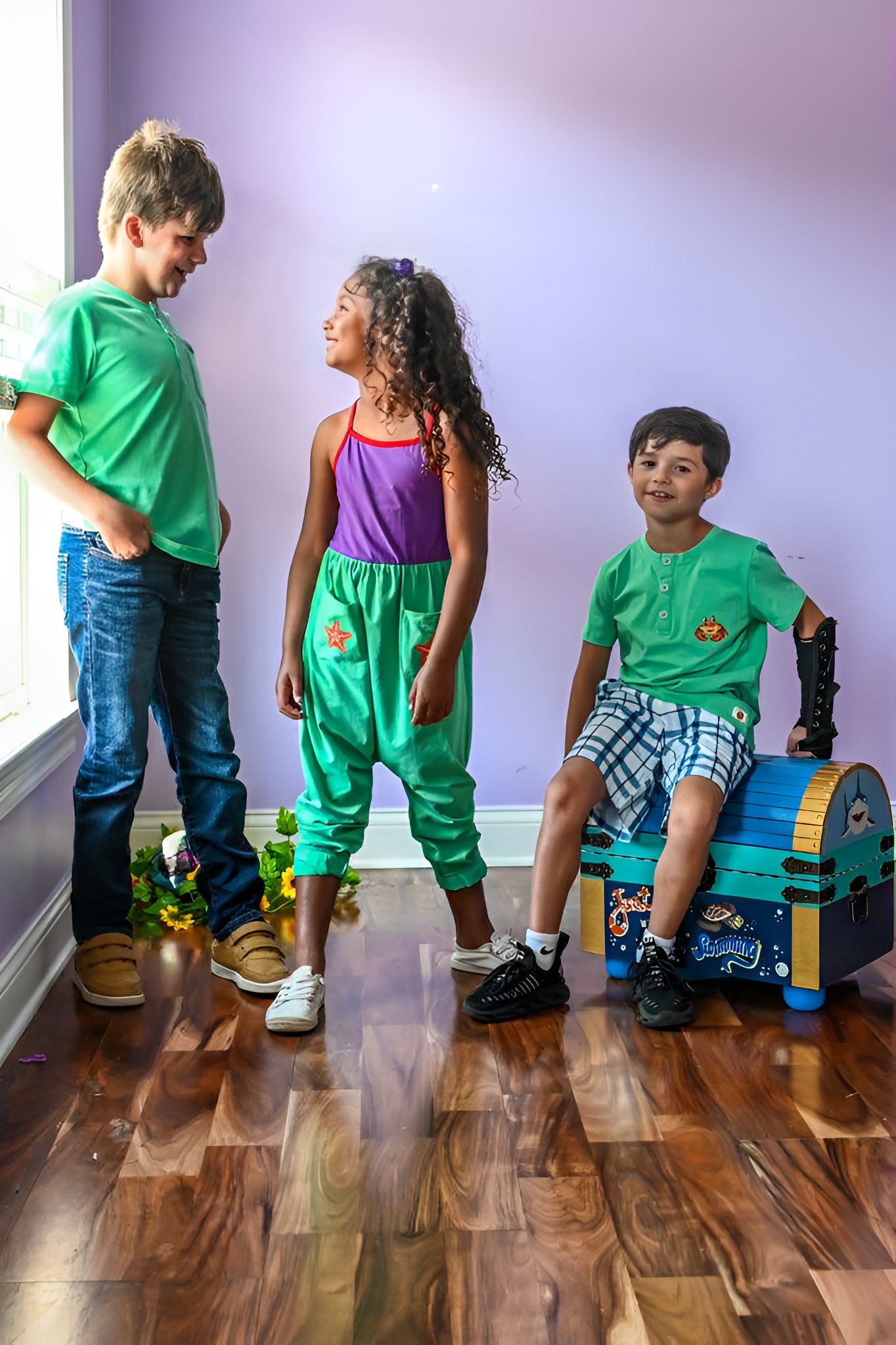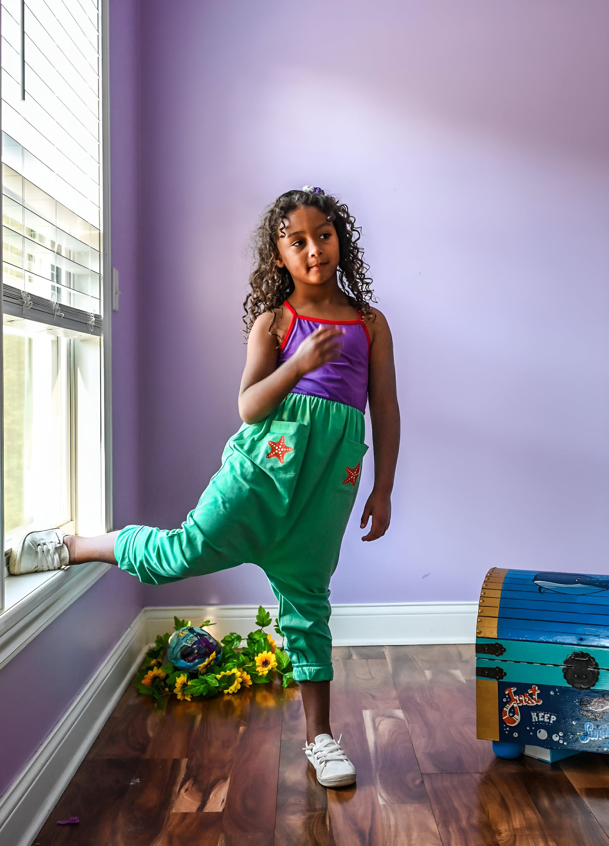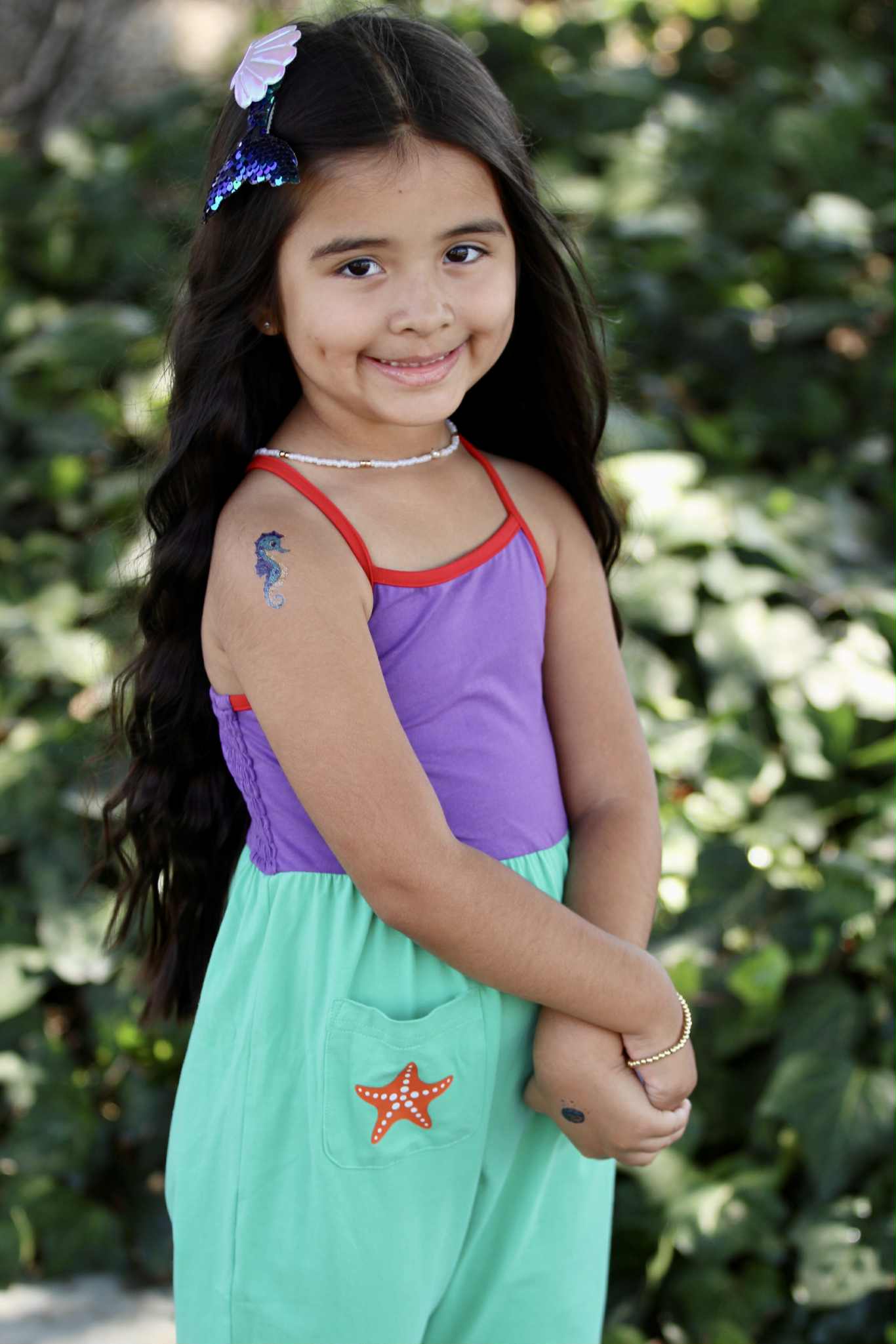 This jumpsuit is made for sea princesses who are ready to run, climb, and charm their way through magical landsâespecially those that involve long lines and castle snacks.